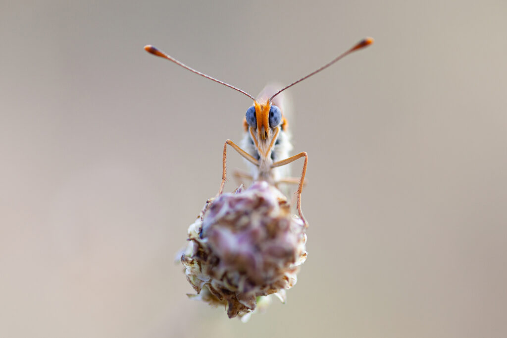 - Fotoğraftaki kelebeğin kanat cephesinden çekimi ile ikinci fotoğraftaki kelebeğin cepheden çekimi arasındaki fark, konunun düzlem üzerindeki konumundan kaynaklanmaktadır. Aynı mesafeden aynı diyafram ile çekilmiş olsa da etkisi aynı olmayacaktır. 1,5-2 cm uzunluğunda bir kelebeğin sadece gözleri ve ön kısımdaki ayaklarını net olarak çekebileceksiniz.